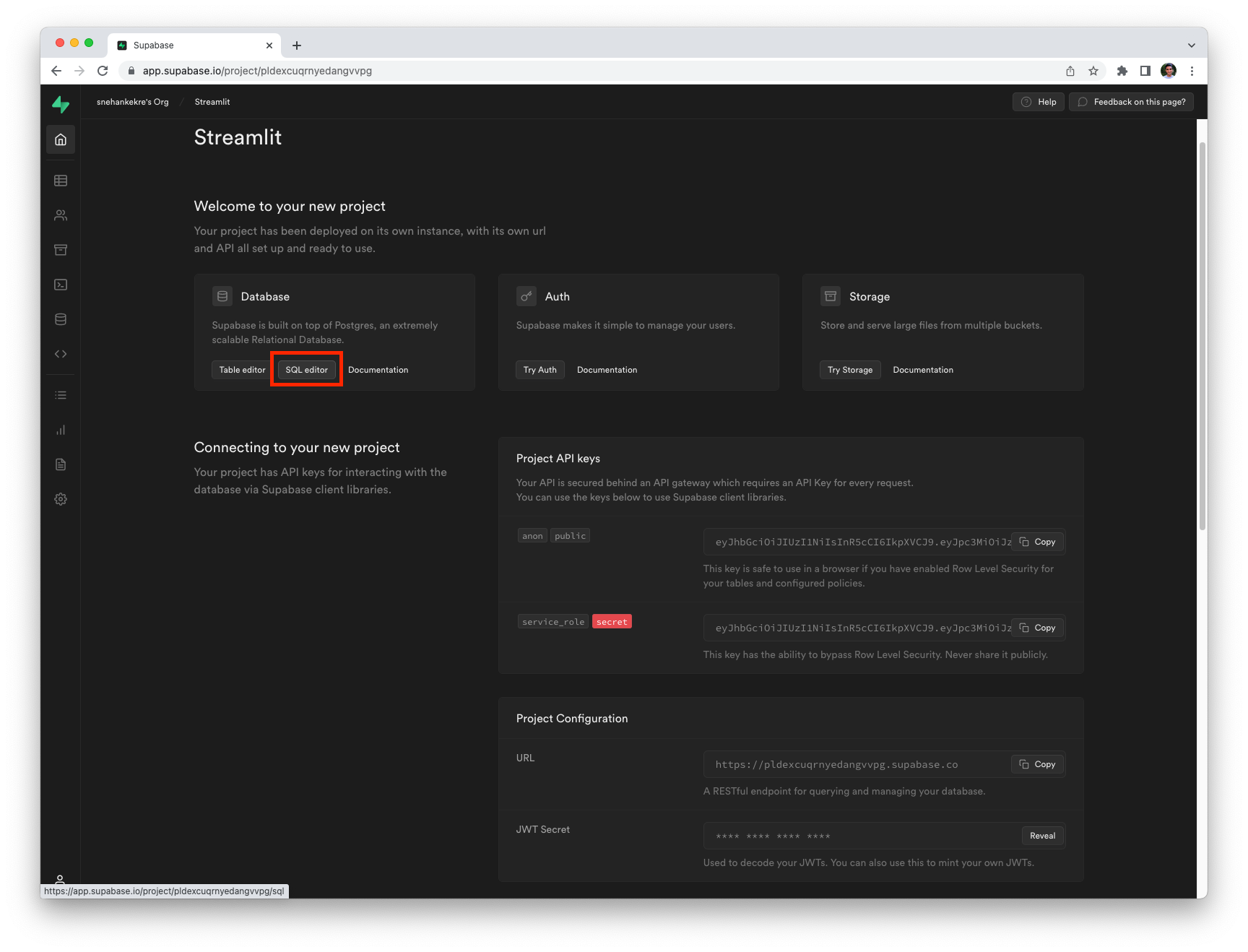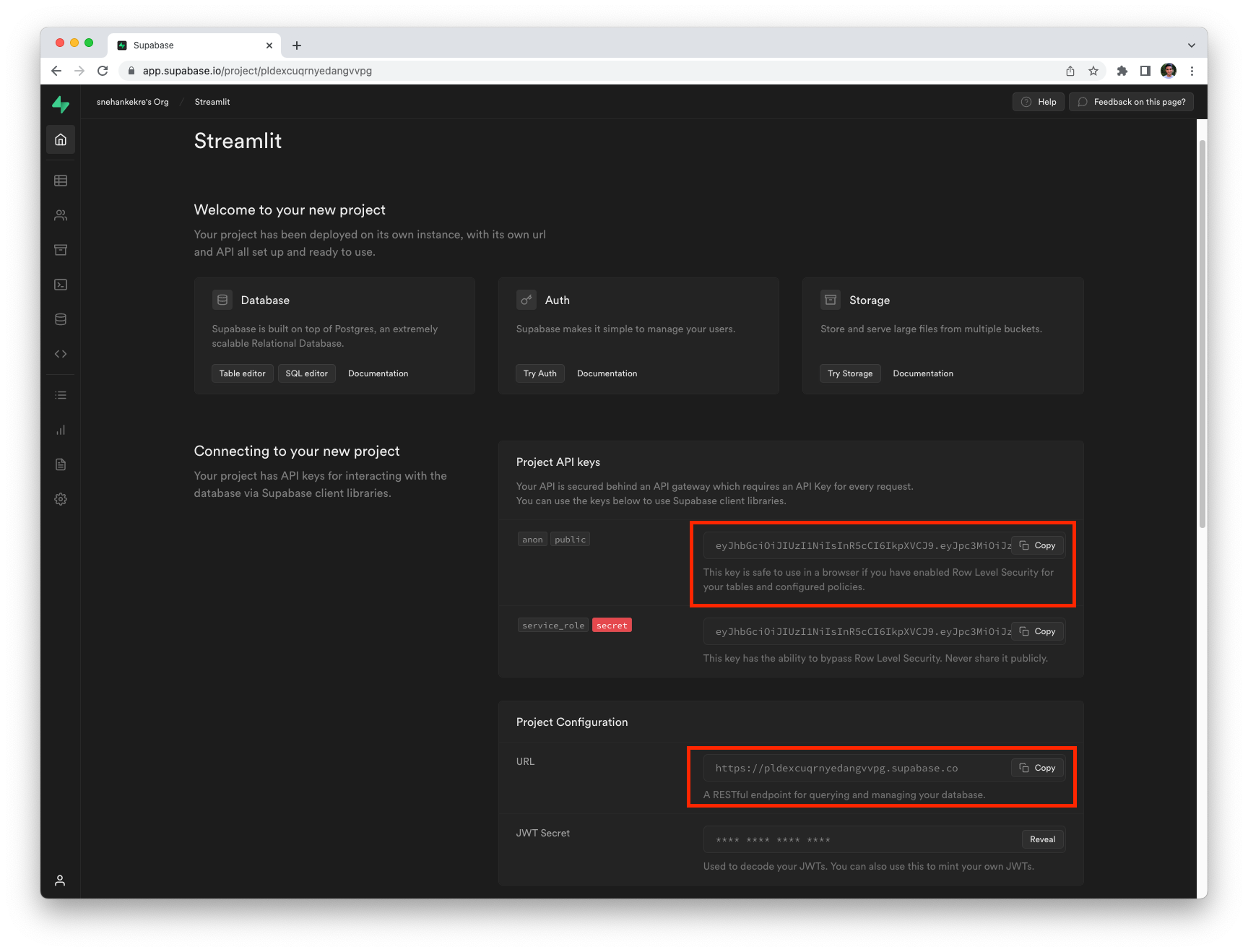 You will need these to connect to your Supabase instance from Streamlit.